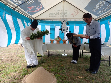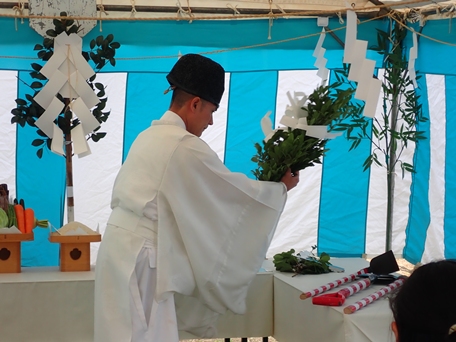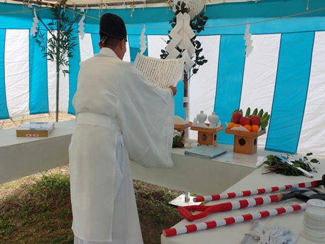 祝詞奏上(のりとそうじょう):その土地に建物を建てる旨を